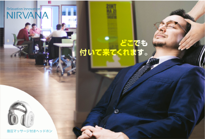 ヘッドホン型マッサージ機という今までにない新商品の紹介。