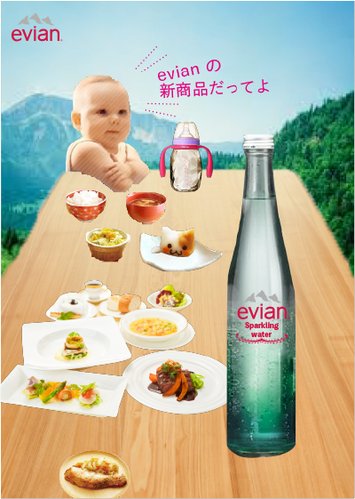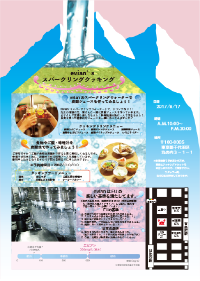 炭酸水だけのPRだと女性ばかり注目してしまう為、近年男性にも注目され始めている料理にフォーカスし、より客層を広げるようデザイン。